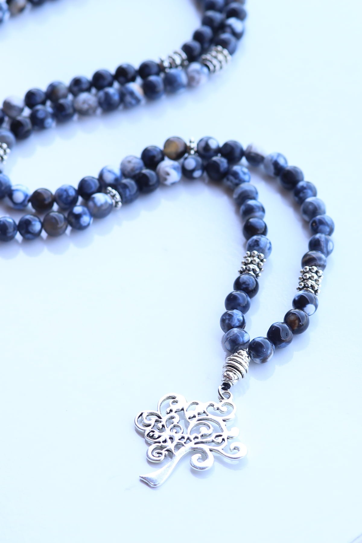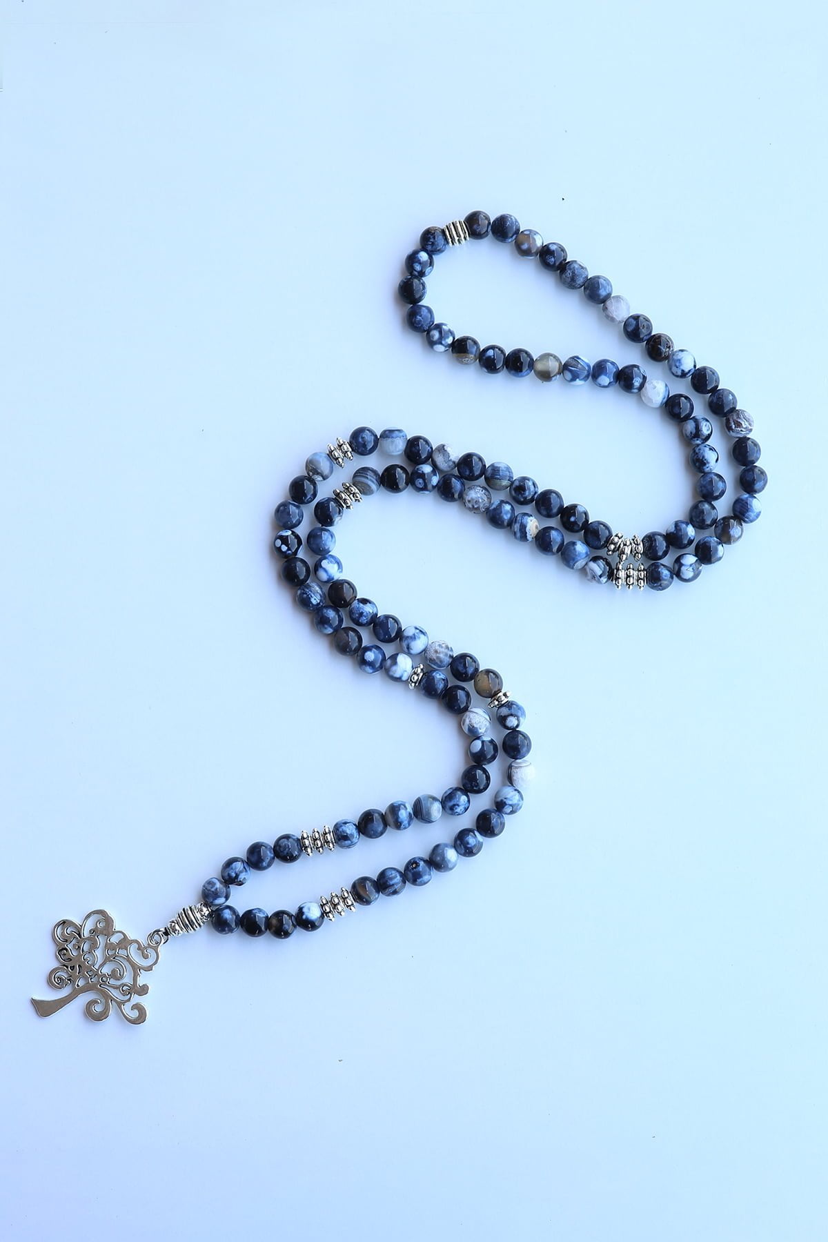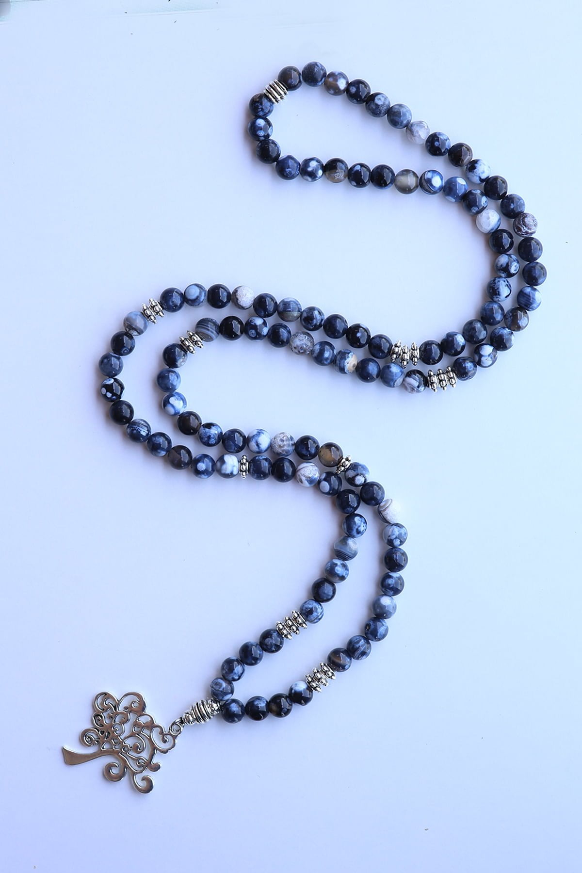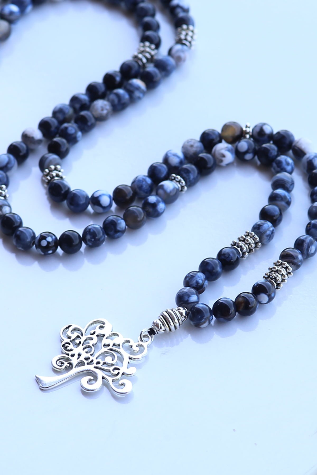 Doğal Taş Damarlı Lacivert akik 108 Mala
